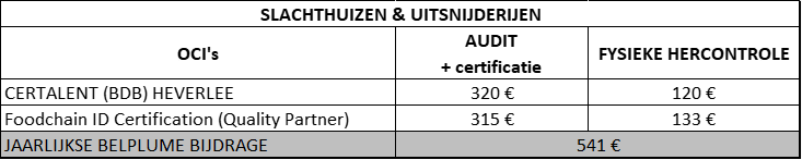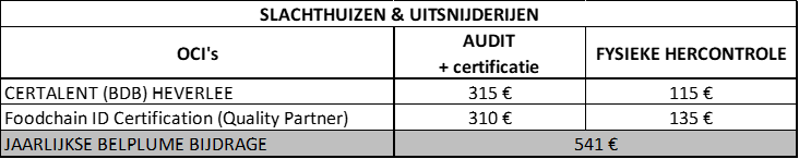 Het tarief (exclusief BTW) voor slachthuizen & uitsnijderijen is geldig voor het lastenboek slachthuizen & uitsnijderijen.